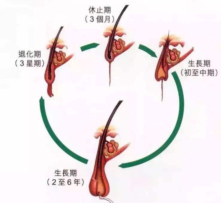 人一生的毛發(fā)生長周期大約會(huì)有20個(gè)。生長期平均3年,占到整個(gè)生長周期時(shí)長的4/5,退行期平均3周,休止期平均3個(gè)月。
