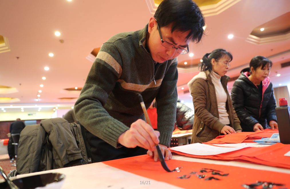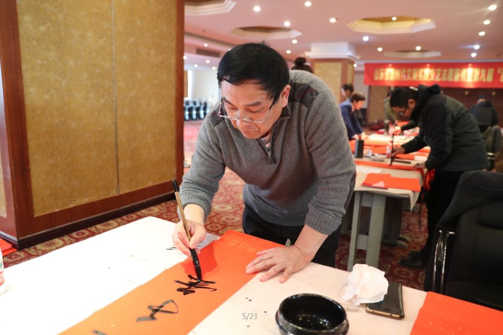1月2日–1月6日,招遠(yuǎn)市書法家協(xié)會“我們的中國夢“文化進(jìn)萬家,山東省新時代文明實(shí)踐文藝志愿服務(wù)暨第九屆“百縣千村”書法下鄉(xiāng)活動之百人寫春聯(lián)活動在金都百貨八樓會議室順利舉行。此次活動共組織了100名志愿者,寫春聯(lián)5000多副。