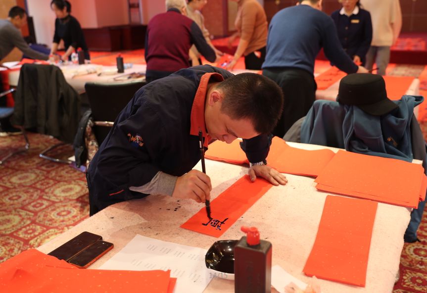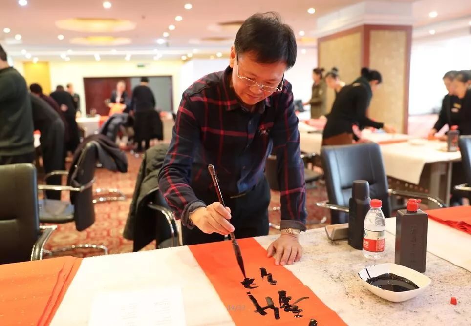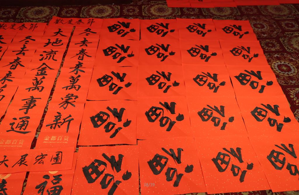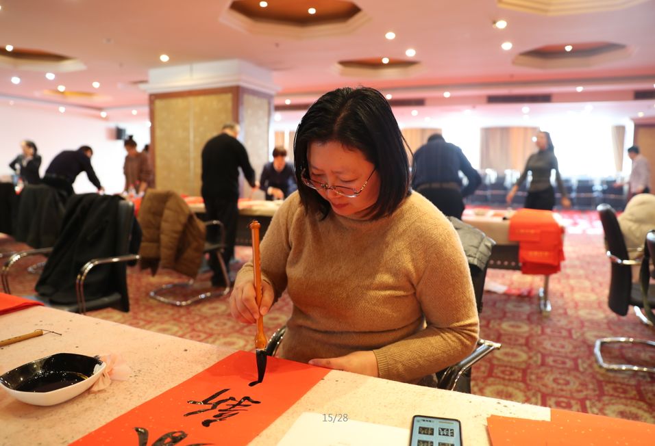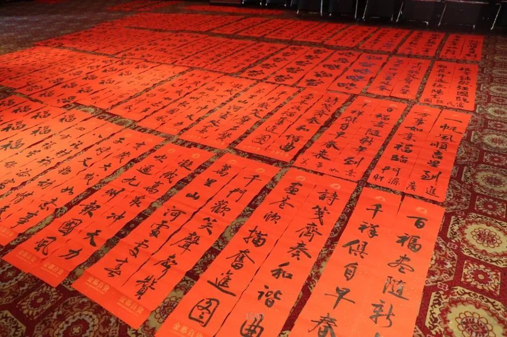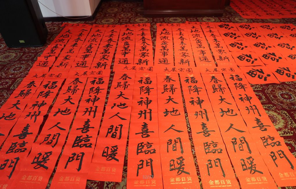 二、組織80名志愿者在金百集團(tuán)八樓會議室寫春聯(lián)5天完成3500副。