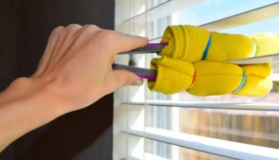 第二步:抹布蘸取洗潔精,也可適當(dāng)加些白醋,夾子夾住百葉窗,輕輕一擦無(wú)塵全無(wú)。