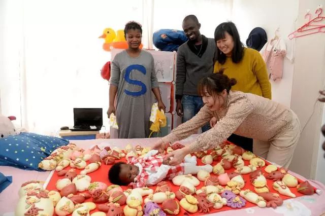 個體戶劉梅夫婦為非洲小孩免費制作了具有膠東民間特色的百歲面塑,讓他們感受到不一樣的民俗文化招遠(yuǎn)吉祥如意喜慶餑餑工作坊的劉梅得知這一消息后,連夜為孩子加工制作了一套精美的“百歲面塑”,因為臨近春節(jié)比較忙就委托作者帶來為 “雷揚”小朋友慶?!鞍贇q”吉辰。小區(qū)的鄰居們也不失事機地來到她們家中表示祝賀。身處異國他鄉(xiāng),入鄉(xiāng)隨俗的民間習(xí)俗禮節(jié)著實讓這一家非洲人覺得距離的親近和文化交流的必要。
