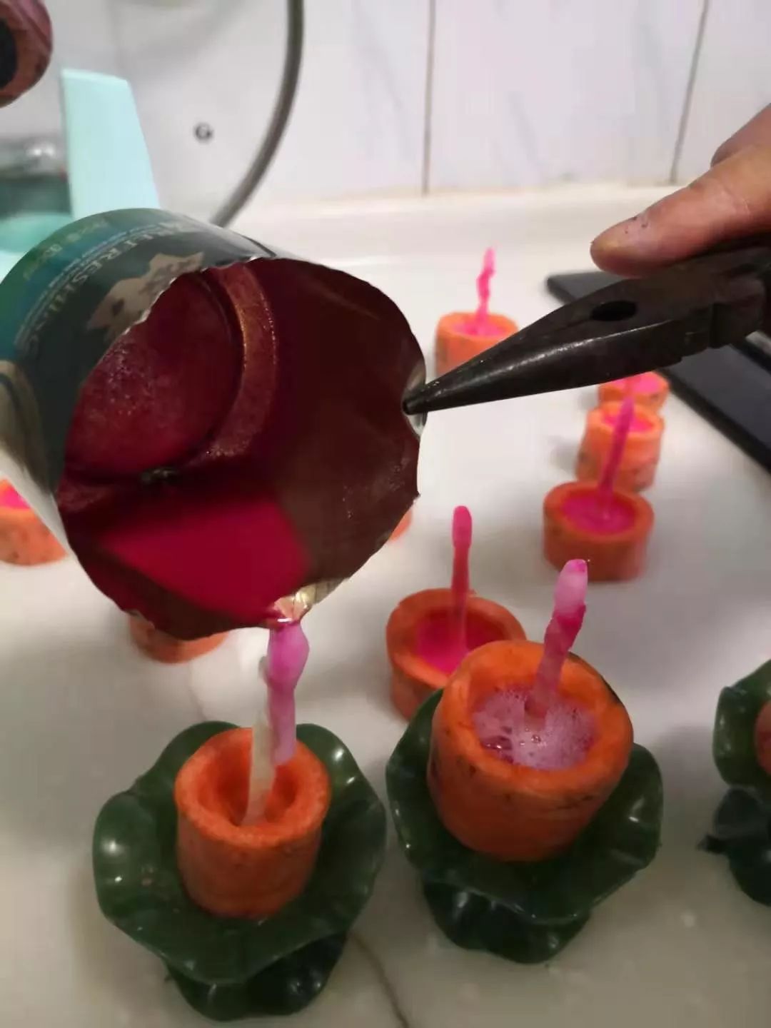 之前嘎好的蘿卜燈存放至正月十五傍晚,由晚輩中的男性送至祖墳,名曰請(qǐng)先人照著亮回家過(guò)十五,另外家大門口、鍋臺(tái)上、供桌上、炕下等同時(shí)點(diǎn)蘿卜燈,近些年許多商家瞅準(zhǔn)一切可以賺錢的機(jī)會(huì),將蘿卜燈衍生成了小蠟燭來(lái)替代了。