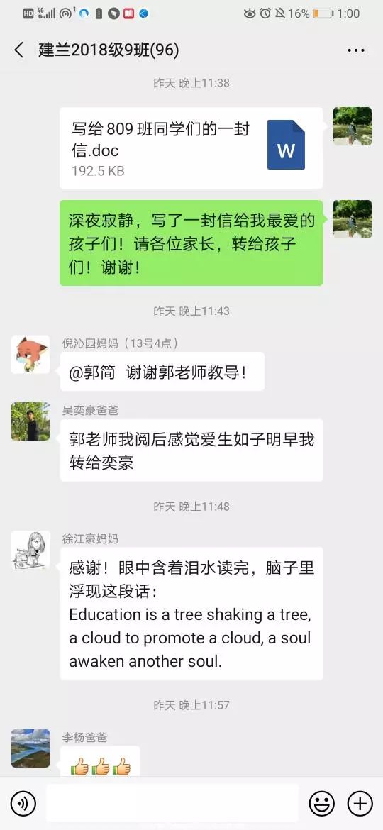 郭老師將這封信發(fā)出去后,不少家長發(fā)出評論,他們說: