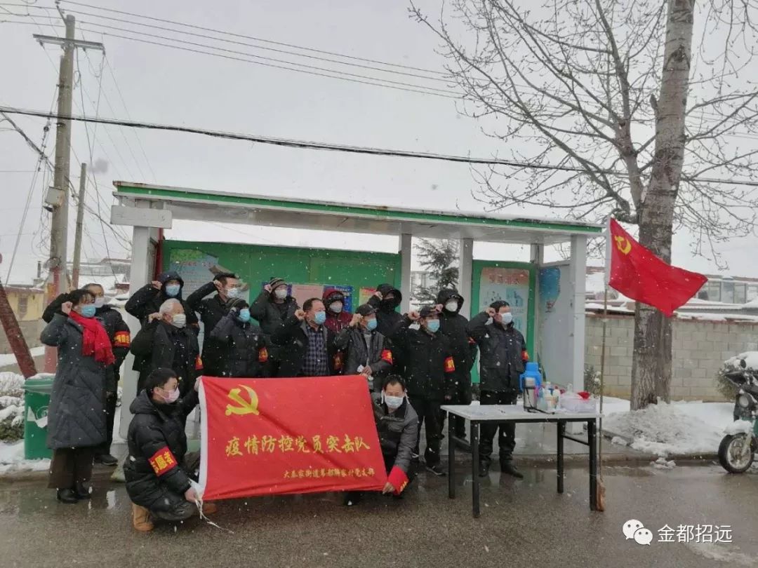 正值2月主題黨日,葦都解家村在抗擊新型冠狀病毒肺炎的非常時(shí)期,選擇在防疫一線開展主題當(dāng)日活動(dòng),黨員冒著風(fēng)雪在黨旗下重溫入黨誓詞。