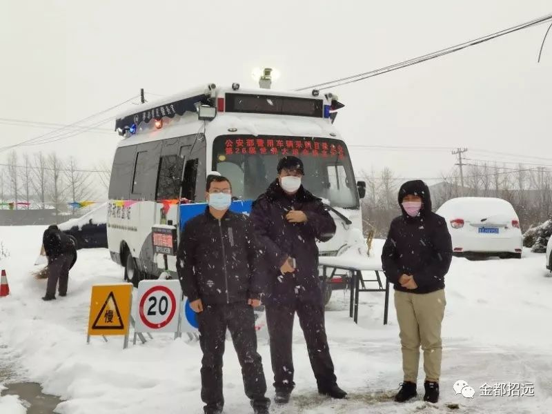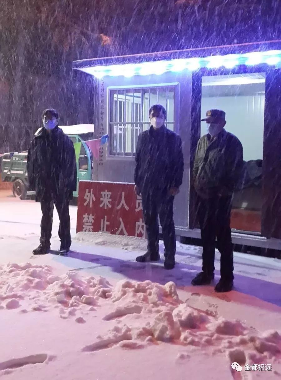 東大夼卡口值守人員頂風(fēng)冒雪堅(jiān)守招遠(yuǎn)東北大門
