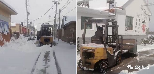 西楊格莊王學(xué)雪義務(wù)用鏟車為村除雪,為群眾打通一條條“愛心通道”。