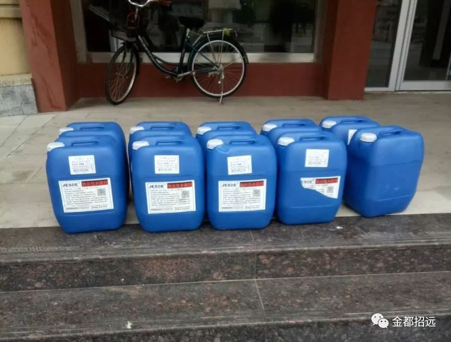 村民李軍捐獻(xiàn)了一排大桶消毒液