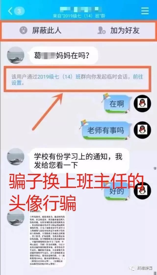 騙子進(jìn)群后,潛水觀察班主任的活動(dòng)規(guī)律,找機(jī)會(huì)將自己的頭像換成下載好的班主任頭像。并將自己的備注名修改為和班主任一模一樣,這樣沒有加班主任為好友的家長(zhǎng),看到的就是一個(gè)真假難辨的班主任。