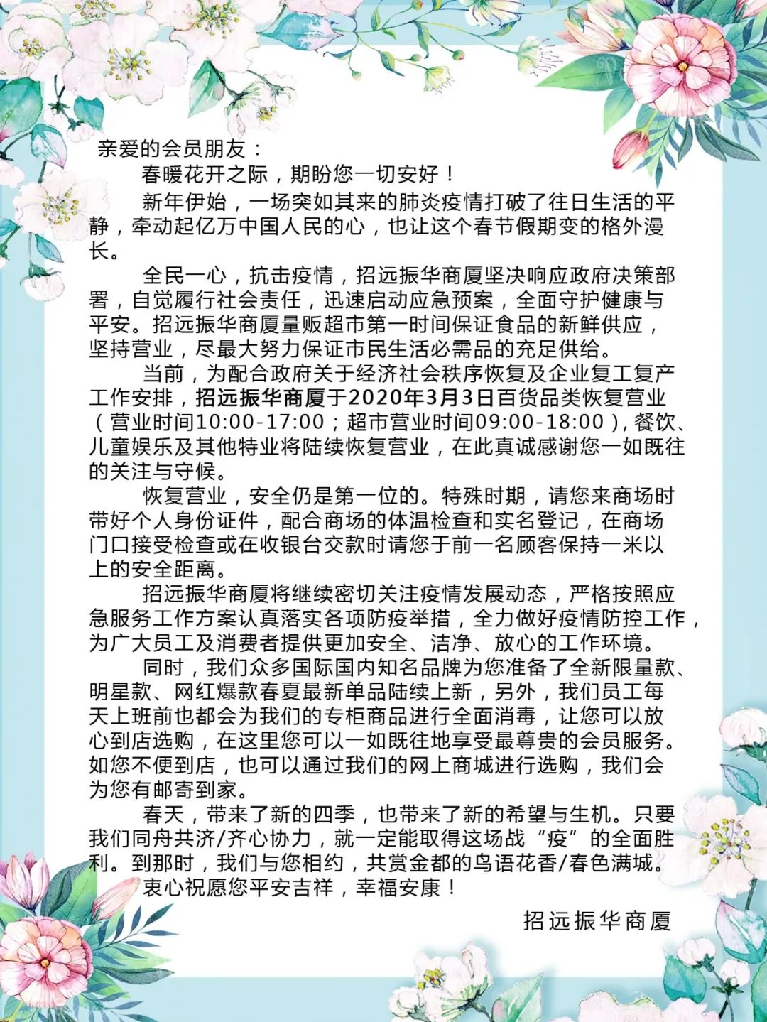 招遠(yuǎn)振華商廈致會(huì)員的一封信