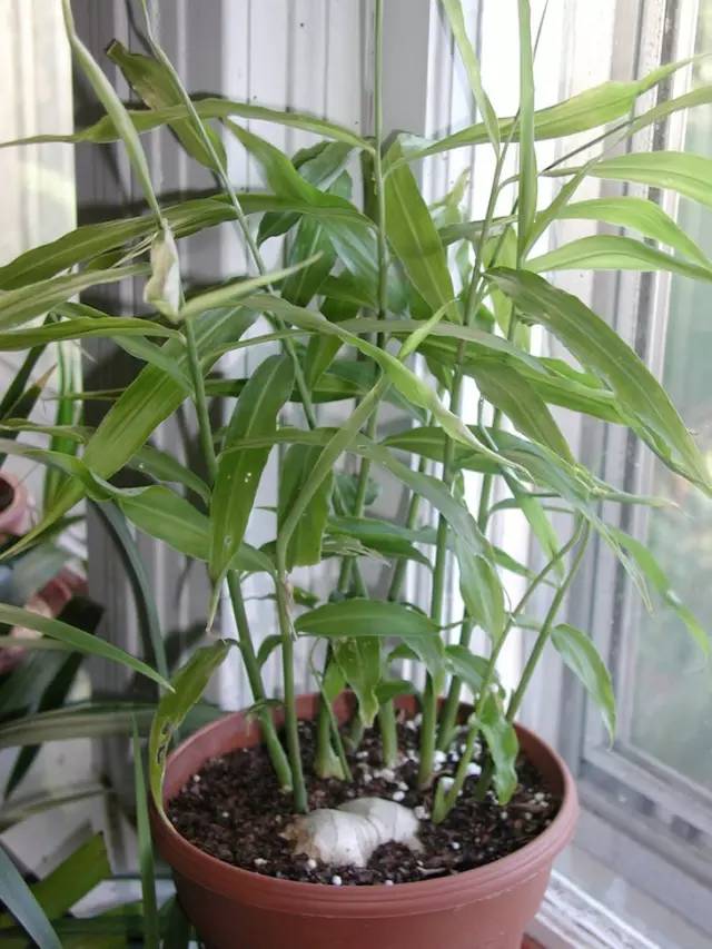 將發(fā)芽的生姜種植在花盆里面,用土蓋住一大半姜身,一次性澆水澆透,到芽冒出來前都不用再澆。