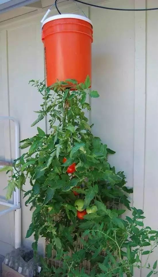 除了傳統(tǒng)的竹子綁枝扶植法,還可以用鐵絲做一個這樣的圓網(wǎng)讓番茄攀枝。