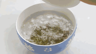 先把綠豆(黃豆、豌豆均可)浸泡在水中5個小時,等到種子吸飽水膨脹,會開始冒出小芽。