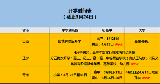 3月下旬開(kāi)學(xué)省份及年級(jí)