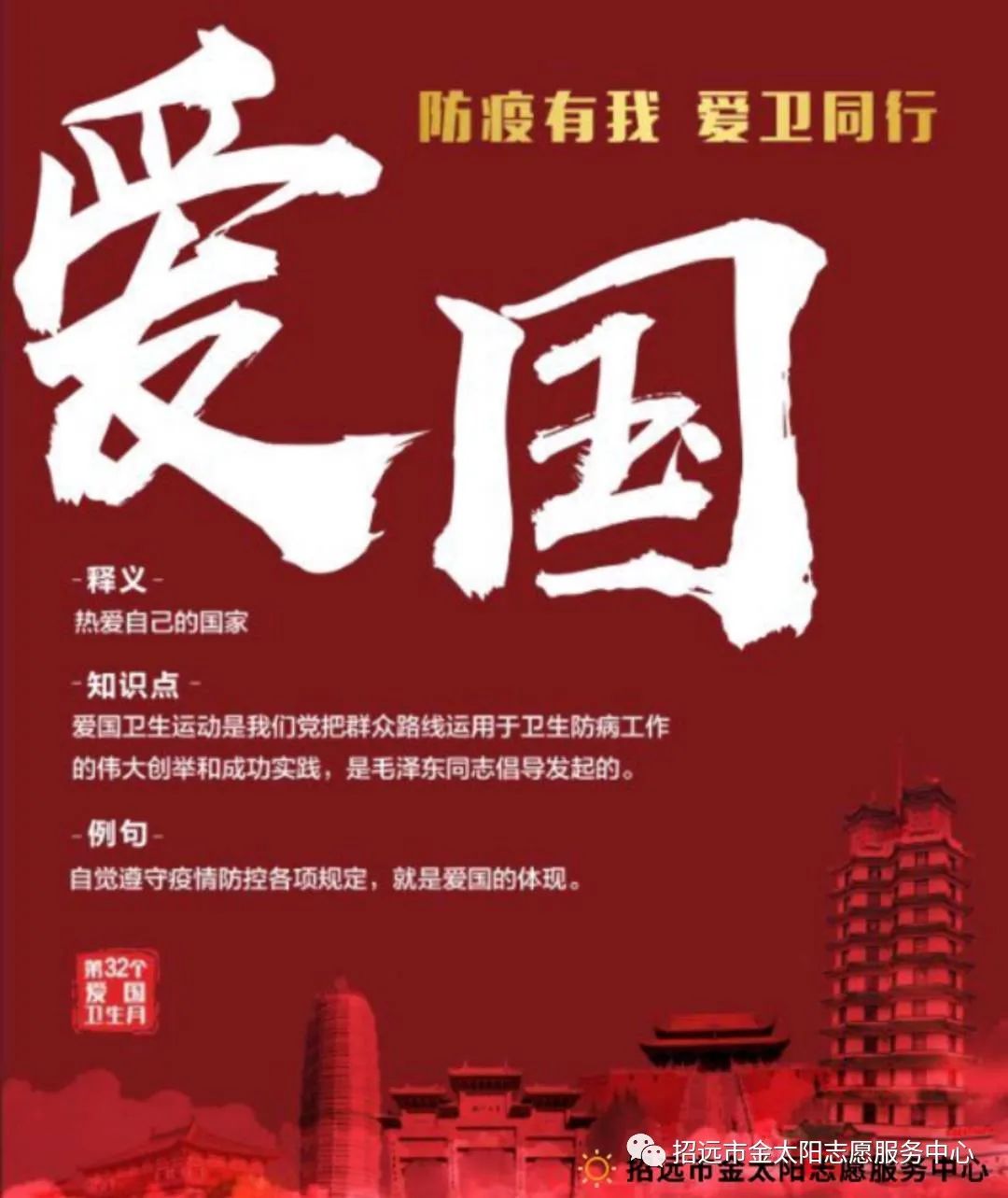 4 月份是全國(guó)第 32 個(gè)愛(ài)國(guó)衛(wèi)生月,值此4 月 7 日第 71 個(gè)世界衛(wèi)生日 來(lái)臨之際,為進(jìn)一步鞏固疫情防控成果,推動(dòng)“愛(ài)國(guó)衛(wèi)生運(yùn)動(dòng)”深入開展。金太陽(yáng)志愿服務(wù)中心號(hào)召全民積極參與愛(ài)國(guó)衛(wèi)生運(yùn)動(dòng),為鞏固疫情防控成果繼續(xù)貢獻(xiàn)自己的力量。上線了"愛(ài)國(guó)衛(wèi)生人人受益,疫情防控人人有責(zé)"活動(dòng)主題的春季愛(ài)國(guó)衛(wèi)生清潔整治專項(xiàng)活動(dòng)。