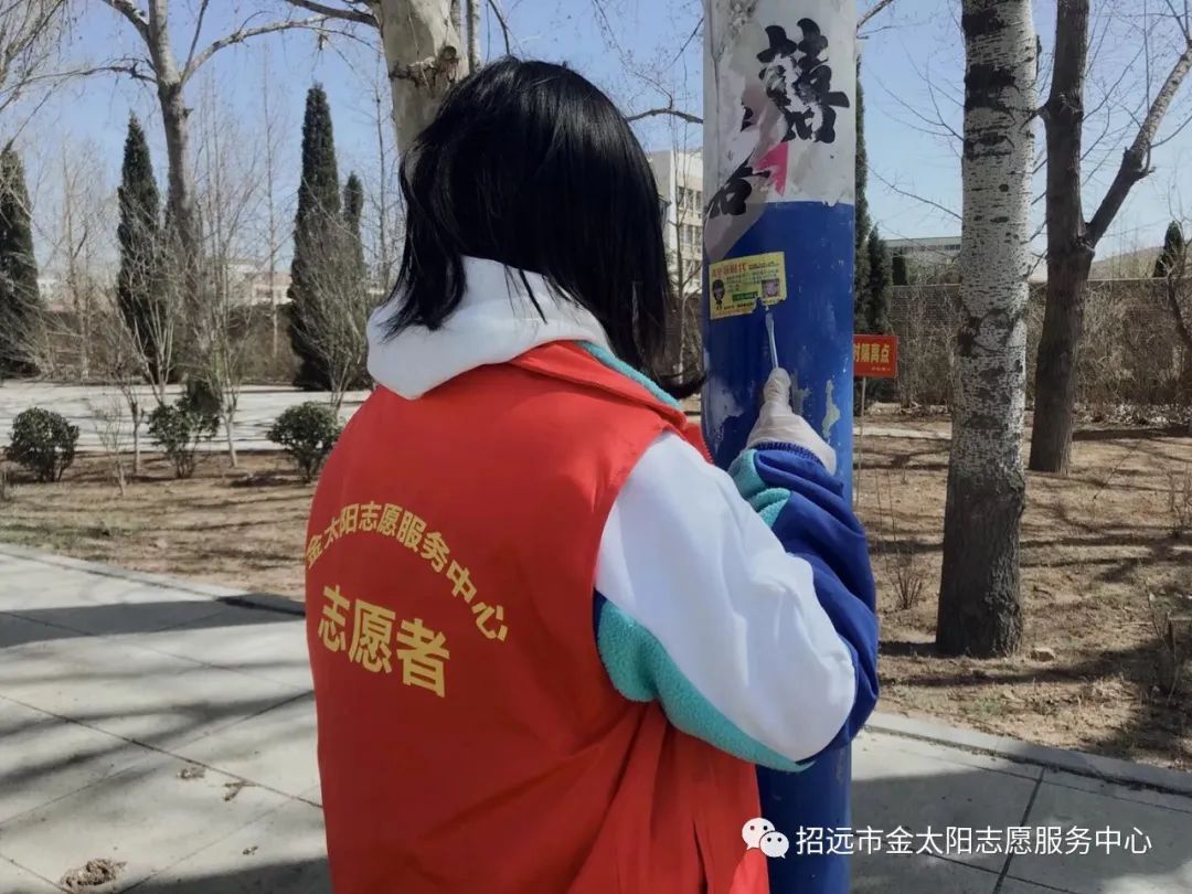 活動(dòng)中,廣大金太陽(yáng)志愿者積極響應(yīng)號(hào)召,帶上清潔工具,走上街頭,仔細(xì)清掃每一處垃圾;走進(jìn)社區(qū),沖洗頑固污漬;爬上陡坡,撿拾垃圾;走進(jìn)荒地,清除雜草。據(jù)統(tǒng)計(jì),此次活動(dòng)金太陽(yáng)志愿者共出動(dòng)300余人次,清理野廣告400余張。