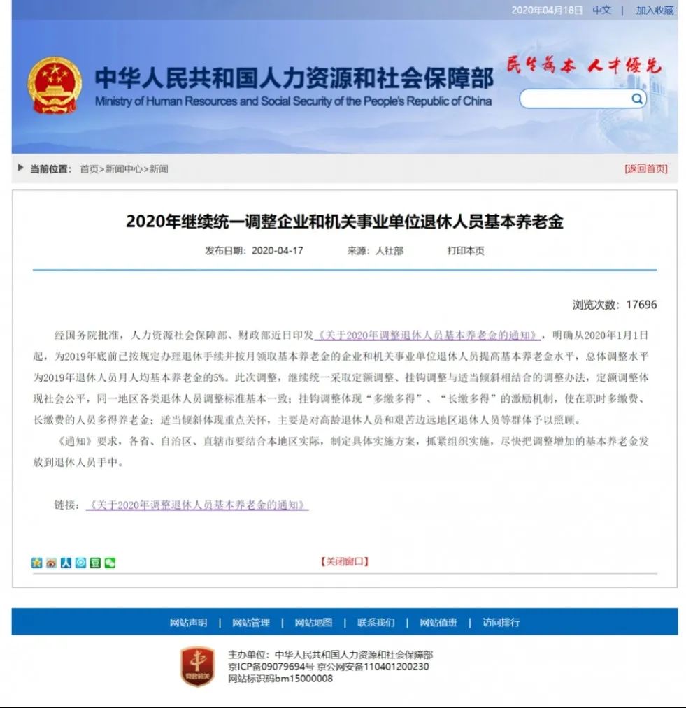 關(guān)于2020年調(diào)整退休人員基本養(yǎng)老金的通知