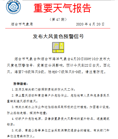 招遠(yuǎn)市氣象局今天早晨06時發(fā)布的天氣預(yù)報: