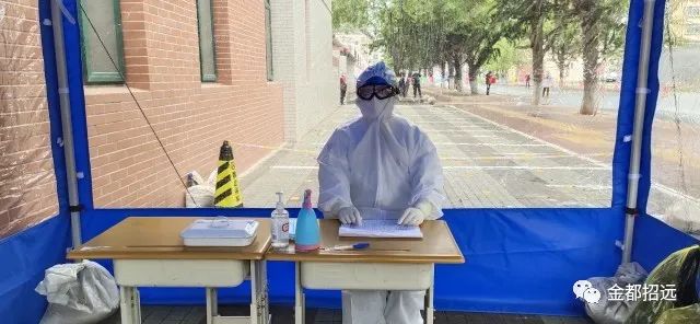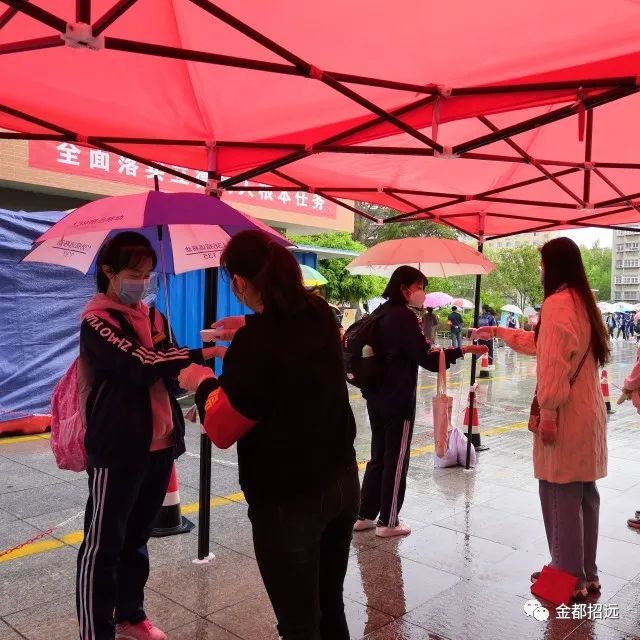 早上6點(diǎn)30分,天空下著雨,為了確保學(xué)生安全返校,避免學(xué)生扎推聚集,校門口早已組成了“最嚴(yán)檢測(cè)通道”,學(xué)校的工作人員和檢測(cè)設(shè)備早已到位,還有負(fù)責(zé)協(xié)助學(xué)校聯(lián)防聯(lián)控的疾控人員、公安警力都在學(xué)校門口對(duì)即將返校的學(xué)生保駕護(hù)航。