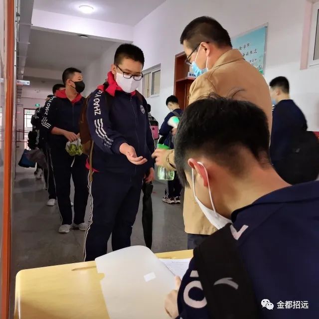 7點(diǎn)30分左右,畢業(yè)年級(jí)學(xué)生在經(jīng)過(guò)測(cè)溫、出示健康碼等程序后順利完成了入校環(huán)節(jié),靜謐的校園再次恢復(fù)了活力和生機(jī)。在進(jìn)入班級(jí)環(huán)節(jié),學(xué)校還進(jìn)行了新一輪檢測(cè)。各班負(fù)責(zé)老師再一次為學(xué)生測(cè)量體溫并為學(xué)生進(jìn)行消毒,合格后方可進(jìn)入教室。