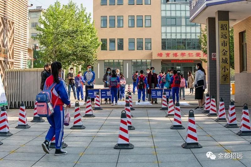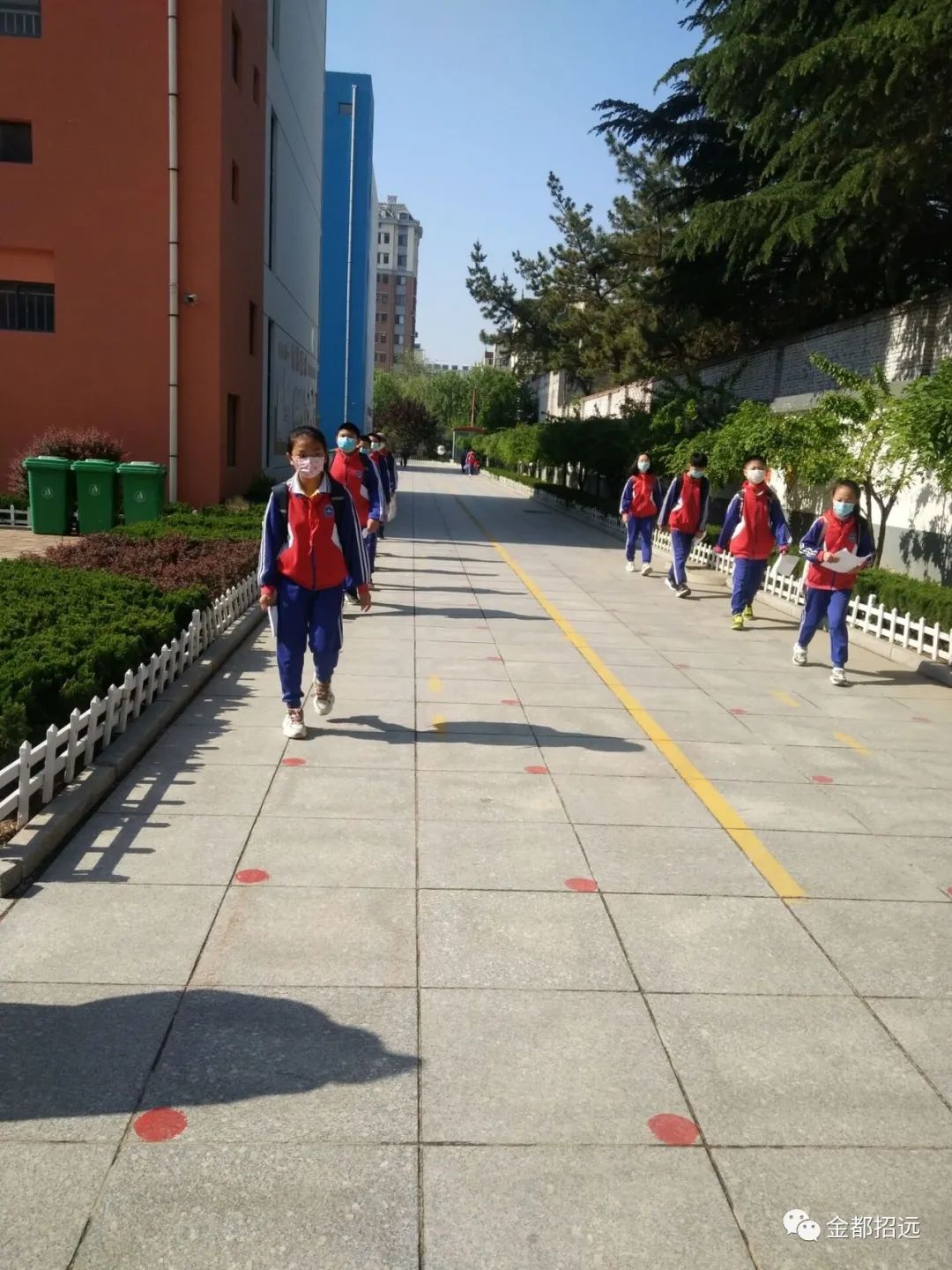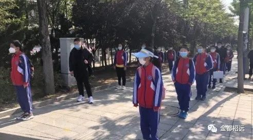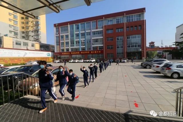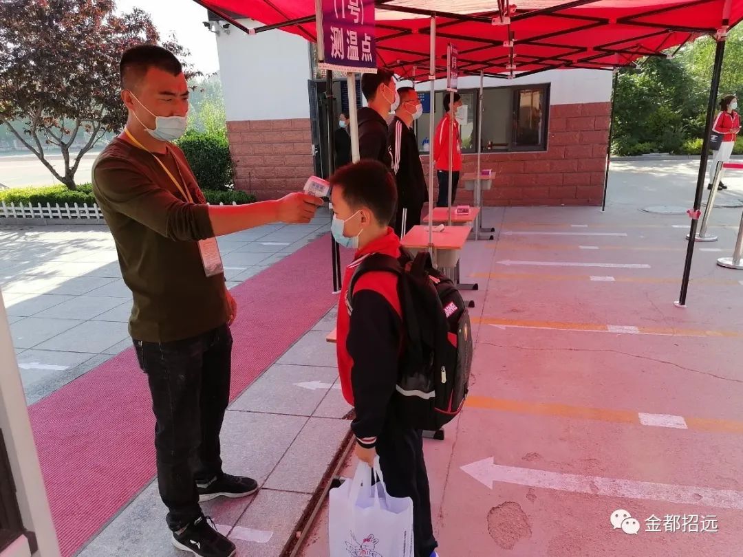按照預定程序,學生在校門口按照學校劃定的距離和位置排隊入學。在工作人員引導下,按照指示牌逐一進行消毒、測溫。測溫合格的學生按照學校指定路線,進入教學樓,在教室門口二次測溫合格后,進入教室坐到指定的座位。