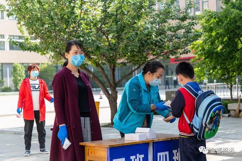 七點十分,學生在老師和相關工作人員的幫助下,在經(jīng)過測量體溫、消毒、登記等嚴格的防疫措施后錯峰入學,,順利進入心心念念的教室