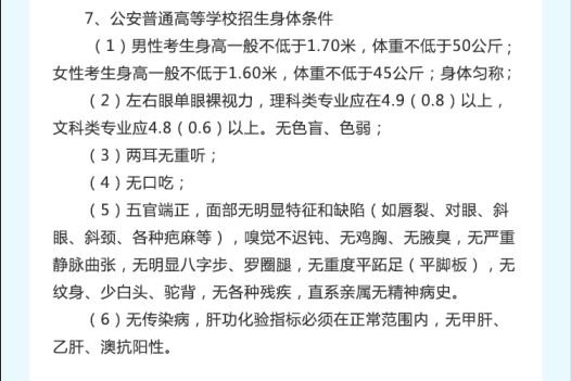凡報考普通高校的所有考生均須參加體檢。包括參加春、夏季高考的所有考生和各類單招、綜合評價招生等不參加文化統(tǒng)考的考生。