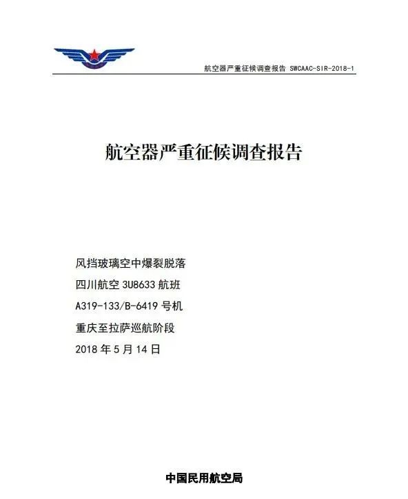 6月2日,中國(guó)民用航空安全信息系統(tǒng)發(fā)布2018年5月14日川航A319-100/B-6419號(hào)機(jī)執(zhí)行3U8633重慶至拉薩航班風(fēng)擋玻璃空中爆裂脫落事件的調(diào)查報(bào)告。
