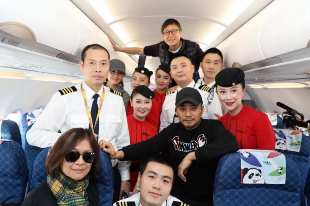△圖為電影《中國(guó)機(jī)長(zhǎng)》演職人員與英雄原型合影