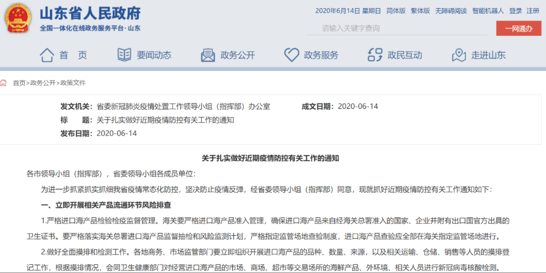 關(guān)于疫情防控,山東下發(fā)重要通知!