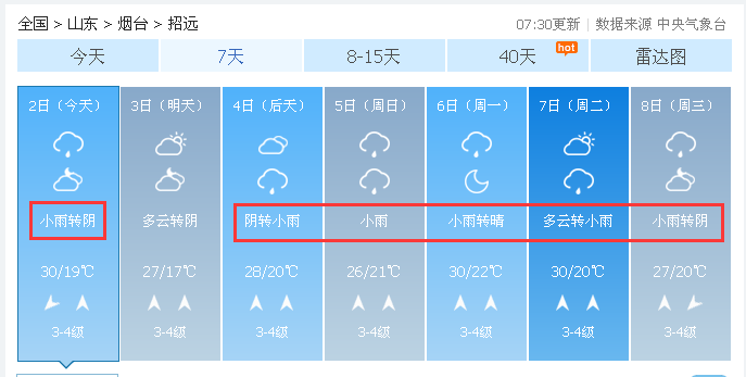 招遠市氣象局7月2日14時50分發(fā)布雷電黃色預警信號:目前,我市部分地區(qū)已出現雷電活動。預計下午到明天,我市大部分地區(qū)有雷雨或陣雨,局部地區(qū)伴有短時強降水或冰雹,雷雨時陣風7-8級。請注意防范。