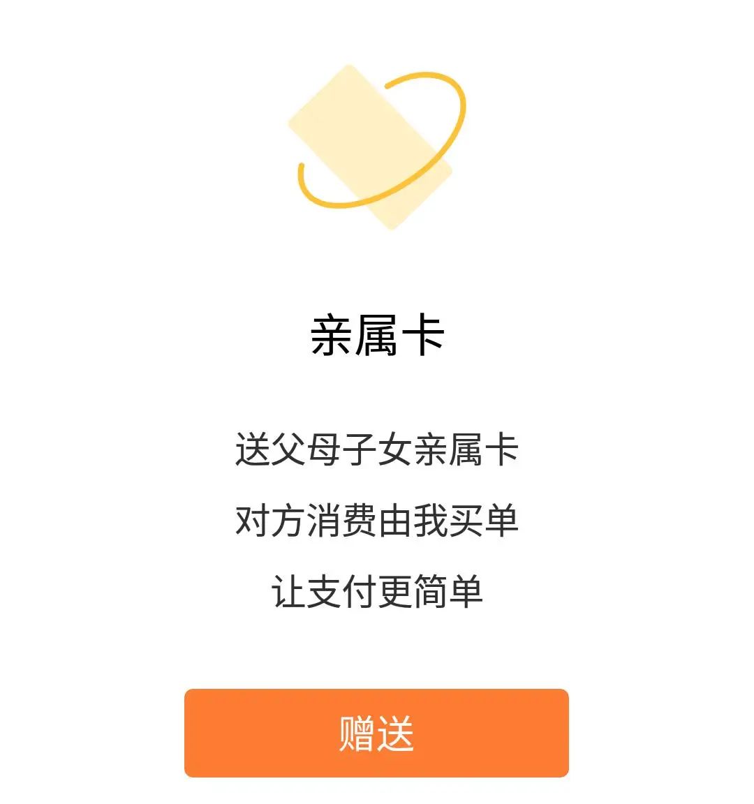 微信此前推出了“親屬卡”功能,用戶可在微信上給父母、子女開通/贈(zèng)送親屬卡,使用親屬卡消費(fèi)時(shí),消費(fèi)資金將自動(dòng)從代付方賬戶扣除。