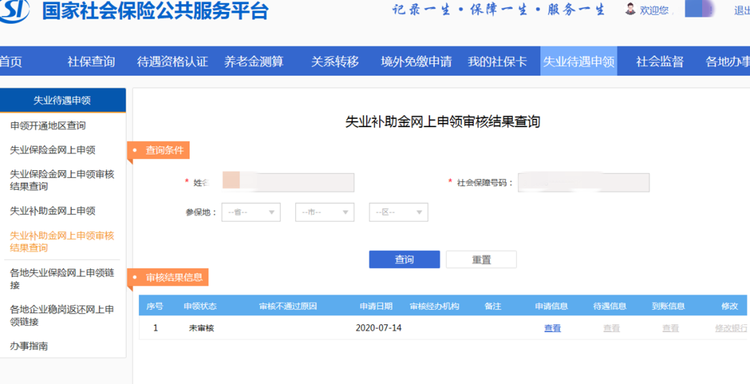 申請(qǐng)成功后,如何查詢申請(qǐng)結(jié)果:登錄網(wǎng)站(詳見申請(qǐng)步驟一)————點(diǎn)擊“失業(yè)待遇申領(lǐng)”——失業(yè)補(bǔ)助金網(wǎng)上申領(lǐng)審核結(jié)果查詢——查詢溫馨提示:1.如申請(qǐng)狀態(tài)為“未審核”,請(qǐng)耐心等待幾日后查詢,工作人員正在快馬加鞭的為您審核;2.補(bǔ)貼資金發(fā)放至社??ń鹑谫~戶,請(qǐng)查詢社??ㄣy行賬戶。