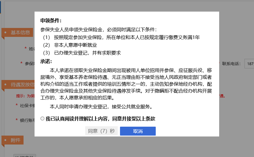 5.仔細(xì)閱讀此頁面提示內(nèi)容(“申領(lǐng)條件”、“承諾”),符合申領(lǐng)條件點(diǎn)擊“我已認(rèn)真閱讀……”前的○——點(diǎn)擊“同意”;