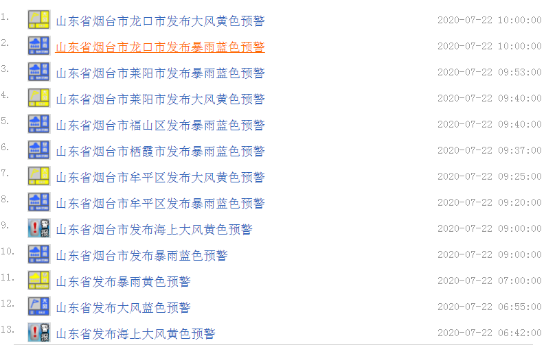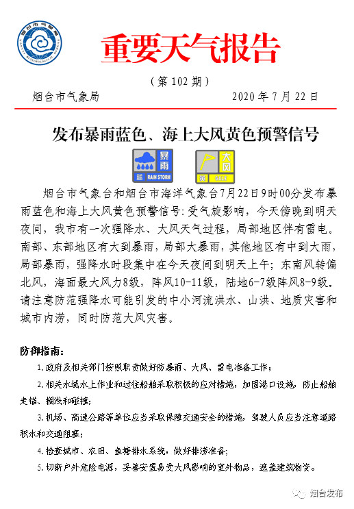 煙臺市發(fā)布暴雨藍(lán)色預(yù)警