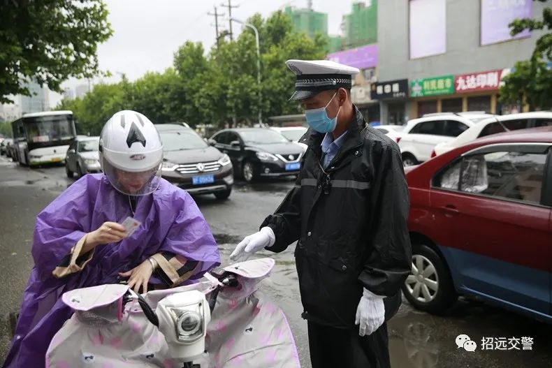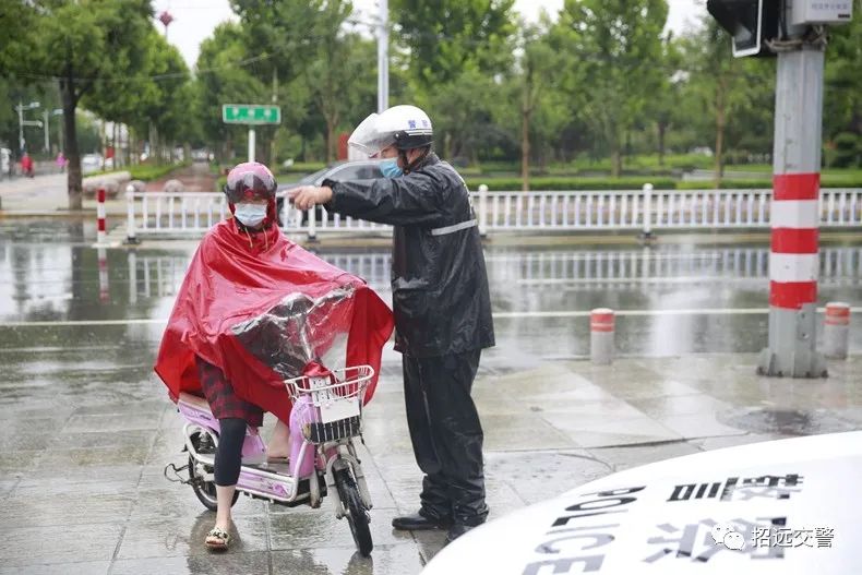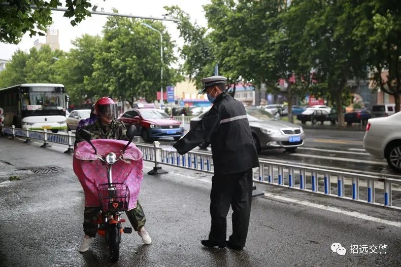 7月22夜間到23日上午,全市普降中到大雨,招遠(yuǎn)交警全力加強(qiáng)降雨天道路交通管控,指揮疏導(dǎo)交通,勸導(dǎo)電動(dòng)自行車(chē)使用雨披妨礙安全駕駛等違法行為,全力保障道路安全暢通。