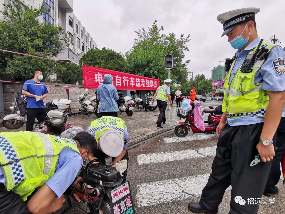 同時(shí),針對(duì)路面行駛的電動(dòng)自行車(chē)駕駛?cè)艘蚬ぷ?、距離等原因,不能及時(shí)到登記點(diǎn)登記掛牌的現(xiàn)象,為了最大限度的滿足群眾的需要,大隊(duì)一中隊(duì)民警,主動(dòng)作為、靠前一步, 在城區(qū)溫泉路河?xùn)|路口、羅峰路二百路口等地點(diǎn),設(shè)立多個(gè)電動(dòng)自行車(chē)流動(dòng)掛牌點(diǎn),冒雨為過(guò)路電動(dòng)自行車(chē)辦理掛牌業(yè)務(wù),受到了群眾的普遍歡迎。