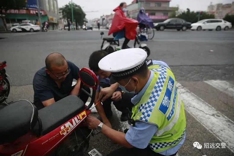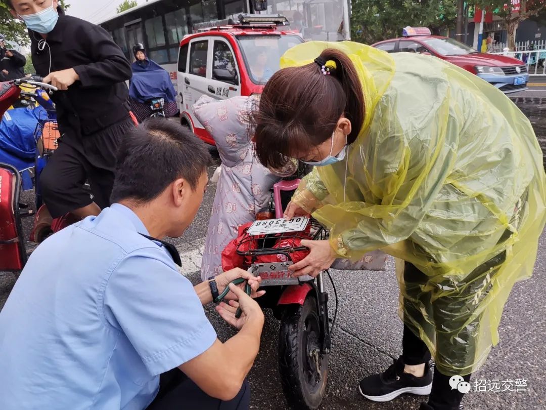 雖然下雨,但是行經(jīng)的電動(dòng)自行車(chē)駕駛?cè)丝吹饺绱朔奖悖阃O萝?chē)進(jìn)行登記辦理;有的群眾專(zhuān)門(mén)到家里騎電動(dòng)車(chē)過(guò)來(lái)掛牌。為了加快辦理速度,民警不顧地面潮濕,累了坐著掛,找不到架號(hào)跪著找,民警的熱情服務(wù)受到了群眾的一致好評(píng),許多群眾自發(fā)為民警打傘遮雨。