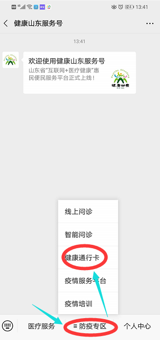 第一步 微信掃碼關(guān)注“健康山東服務(wù)號”微信公眾號。