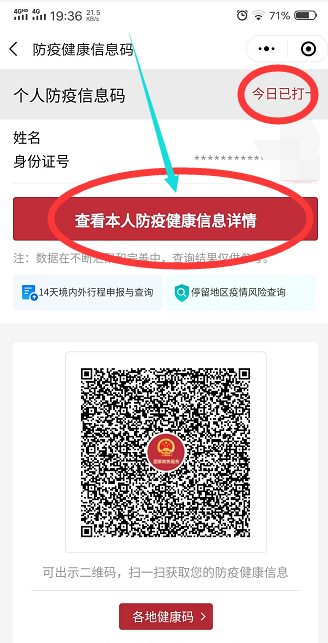 第四步 點擊通行碼出示,查驗健康碼申領(lǐng)狀態(tài)備查。