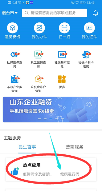 第二步 點擊熱點應(yīng)用—健康通行碼按步驟注冊登錄。