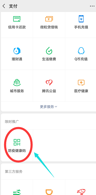 第一步 打開微信,點擊右下角“我”—“支付”進入支付頁面后選擇并“防疫健康碼”。