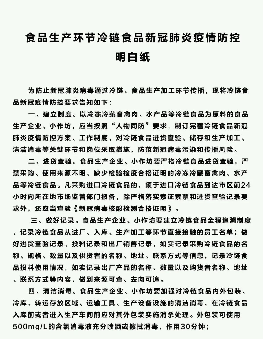 一、制定疫情防控制度。采購(gòu)冷凍冷藏肉類、水產(chǎn)等冷鏈?zhǔn)称返牟惋嫹?wù)提供者(餐飲服務(wù)經(jīng)營(yíng)者、單位食堂和小餐飲),要制定完善冷鏈?zhǔn)称沸鹿诜窝滓咔榉揽毓ぷ鞣桨负驮喜少?gòu)、加工制作、清洗消毒、從業(yè)人員健康管理等關(guān)鍵環(huán)節(jié)工作制度,防范新冠病毒污染和傳播風(fēng)險(xiǎn)。