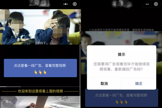 部分發(fā)表者刻意搬運(yùn)有矛盾、有看點(diǎn)的內(nèi)容吸引眼球,劇情快到高潮時戛然而止,然后在文案里引導(dǎo)用戶點(diǎn)擊鏈接觀看“未刪減版”。但是,當(dāng)用戶點(diǎn)進(jìn)公眾號鏈接后會發(fā)現(xiàn),查看完整視頻先得觀看強(qiáng)制廣告,甚至可能只有廣告而根本沒有所謂的“未刪減”視頻。