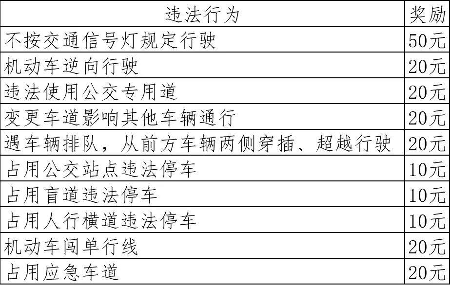 3、舉報(bào)“違法使用公交專用道”的,獎(jiǎng)勵(lì)20元。