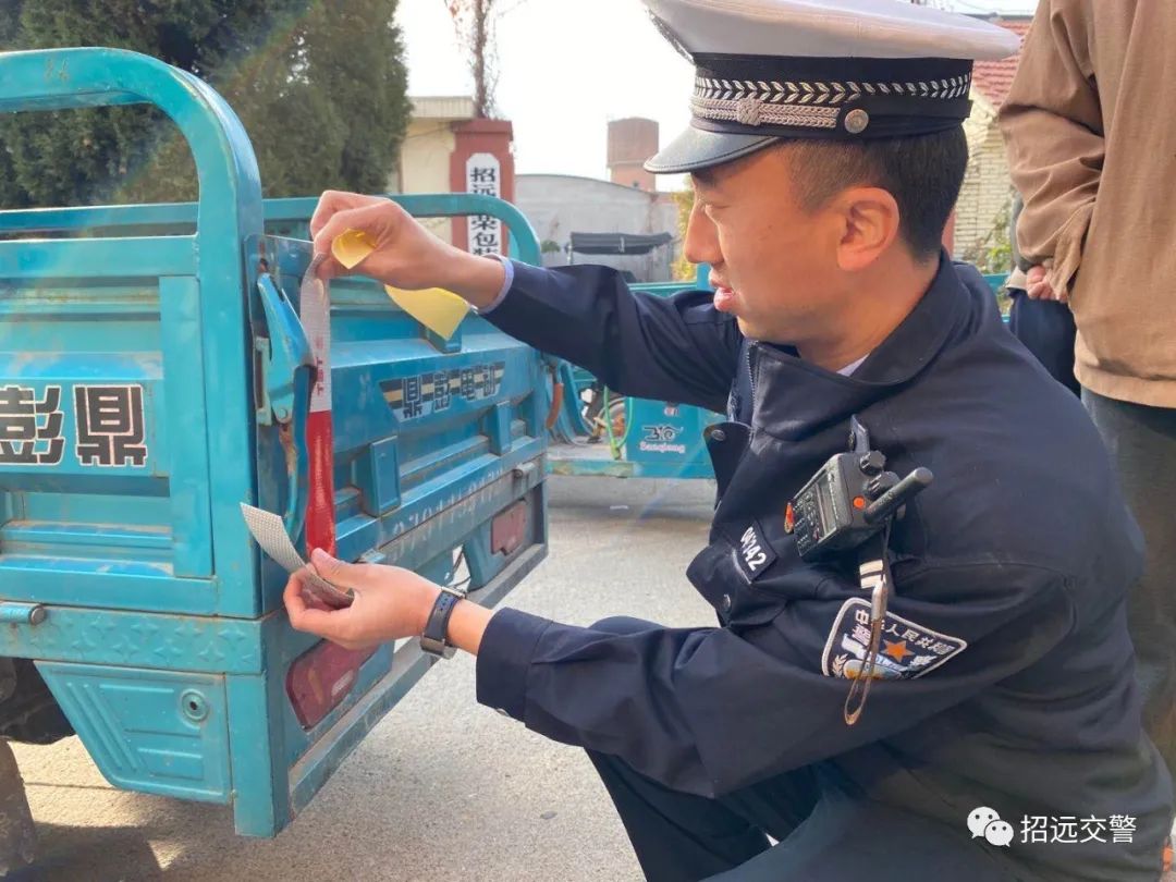 在農(nóng)村及廣大城鄉(xiāng)結(jié)合部,普遍存在農(nóng)用車、拖拉機、三輪車燈光不全,未粘貼反光標(biāo)識等問題,為有效預(yù)防和減少農(nóng)村道路交通事故發(fā)生,消除交通安全隱患,自10月下旬,招遠交警大隊組織警力,深入轄區(qū)鄉(xiāng)鎮(zhèn)街道及主要路段,免費為過往農(nóng)村車輛粘貼反光標(biāo)識,確保夜間和其他時段農(nóng)民朋友行車安全。