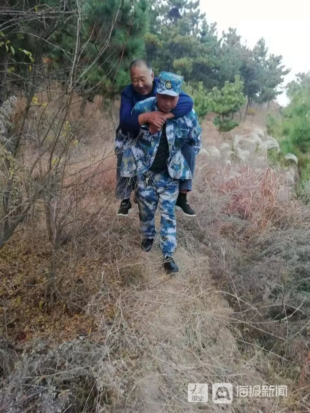 招遠(yuǎn)一村民上山摘松花不慎摔傷,老兵一路背下山!