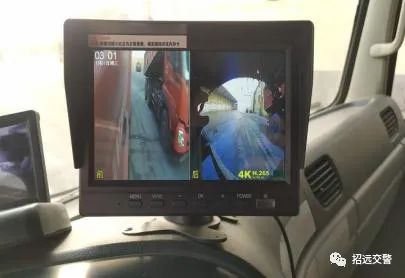 該系統(tǒng)將“貨車盲區(qū)視頻監(jiān)控”與“倒車轉(zhuǎn)彎語音提醒”相結(jié)合,實(shí)現(xiàn)畫面和聲音的同步,有效控制和降低了車輛在轉(zhuǎn)彎、倒車時發(fā)生交通事故的風(fēng)險。“貨車盲區(qū)視頻監(jiān)控”是由一臺7寸兩分隔屏車載顯示器、兩個后視攝像頭組成(一個140度視角、一個180度視角,帶夜視功能)。顯示器安裝在駕駛室儀表臺上,以便于駕駛員隨時觀察畫面;140度攝像頭安裝在車輛右側(cè)反光鏡的支架上,通過這個攝像頭可以及時發(fā)現(xiàn)車輛右側(cè)的行人或車輛;180度的攝像頭安裝在車輛后部,承擔(dān)“倒車影像”作用,通過這個攝像頭可以在倒車時實(shí)時觀察車輛后方的行人或障礙物。