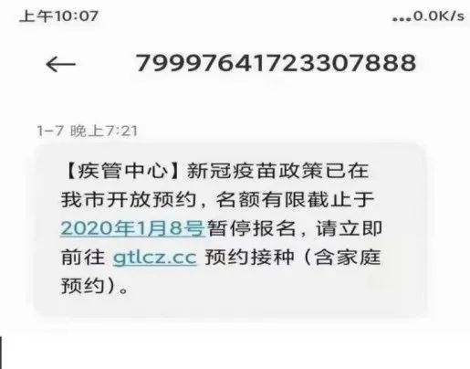詐騙分子冒充疾控中心發(fā)布新冠疫苗信息引誘群眾點(diǎn)擊含木馬網(wǎng)址的鏈接,套取個(gè)人信息,實(shí)施詐騙。