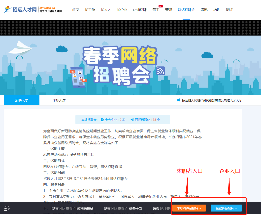 ① 在人才網(wǎng)首頁(yè)點(diǎn)擊網(wǎng)絡(luò)招聘會(huì)(如圖)