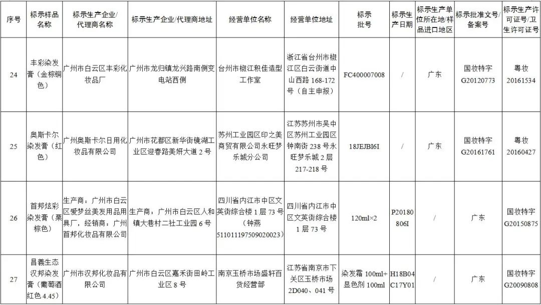 等17批次染發(fā)類產(chǎn)品為假冒產(chǎn)品。(詳見下圖)